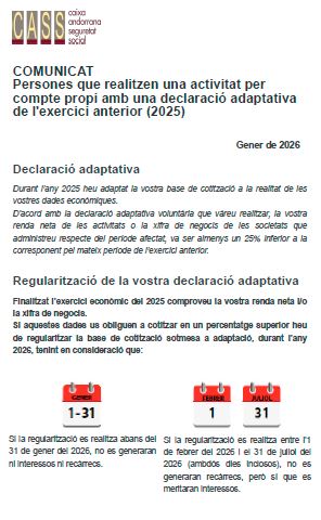 Comunicat informatiu: Persones que realitzen una activitat per compte propi amb una declaració adaptativa de l'exercici anterior (2025)