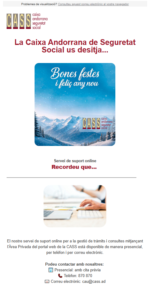 ComuniCASS: Bones festes i feliç any nou/Suport online