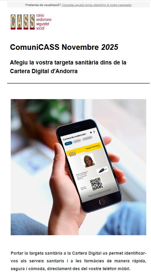 ComuniCASS: Afegiu la vostra targeta sanitària dins de la Cartera Digital d'Andorra