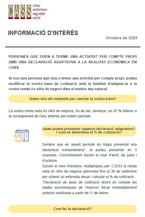 Informació d'interès: Persones que duen a terme una activitat per compte propi amb una declaració adaptativa a la realitat econòmica en curs