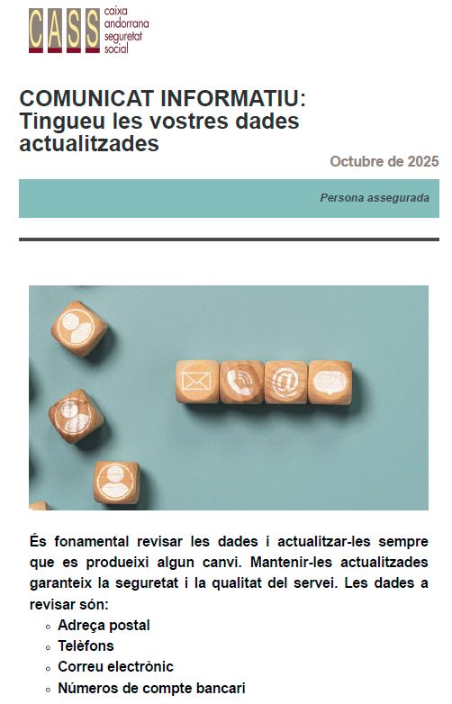Comunicat informatiu: Tingueu les vostres dades actualitzades (persones assegurades)