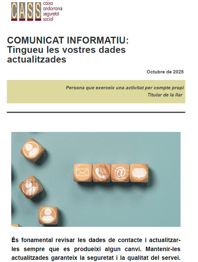 Comunicat informatiu: Tingueu les vostres dades actualitzades (compte propi i titular de la llar)