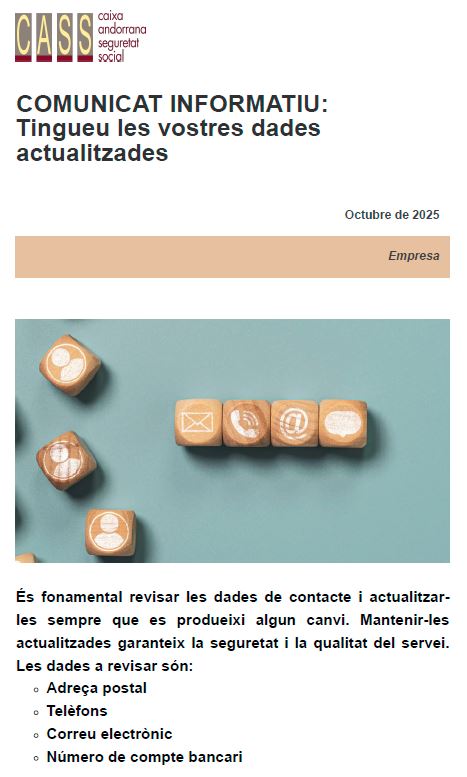 Comunicat informatiu: Tingueu les vostres dades actualitzades (empresa)