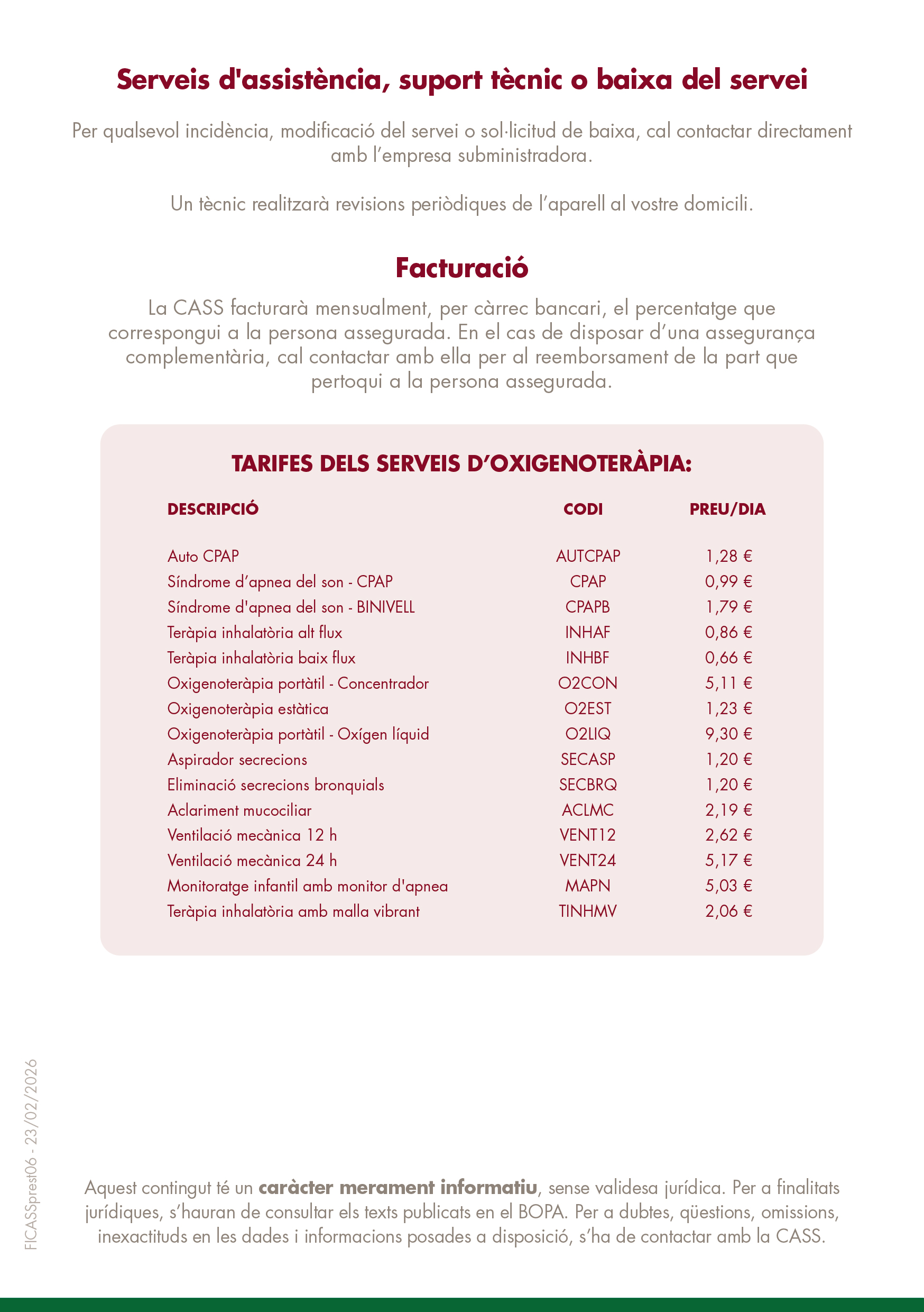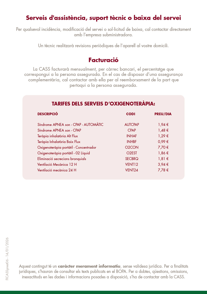 - Comunicar a l'empresa de subministrament "Air Liquide" els dies en què no utilitzareu l'aparell, a fi d'evitar càrrecs durant la vostra absència.