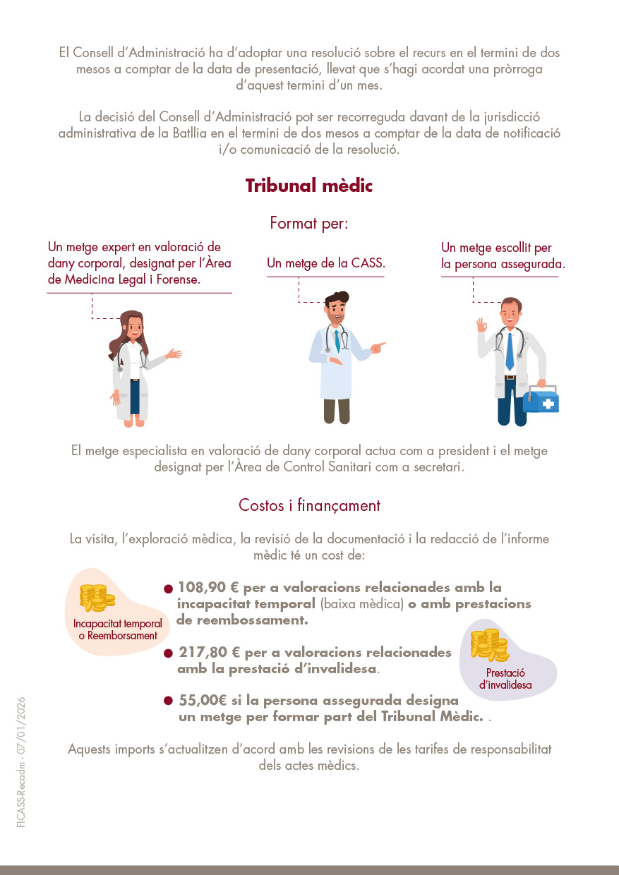 - Si és el Consell d'Administració que sol·licita el Tribunal Mèdic, el cost total va a càrrec de la CASS.