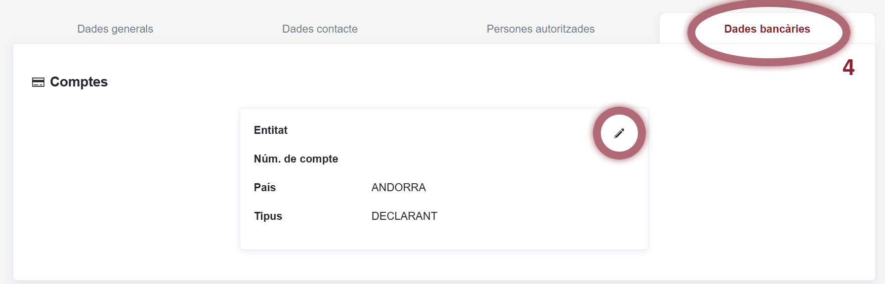 Important: Si modifiqueu aquí el número de compte, aquest serà el que s'utilitzarà per al pagament de les cotitzacions de les persones treballadores de l'empresa.